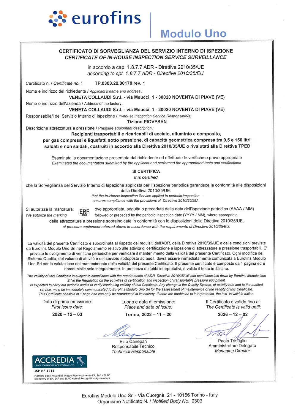 • Nuove Bombole 2024: Veneta Collaudi al Servizio della Sicurezza